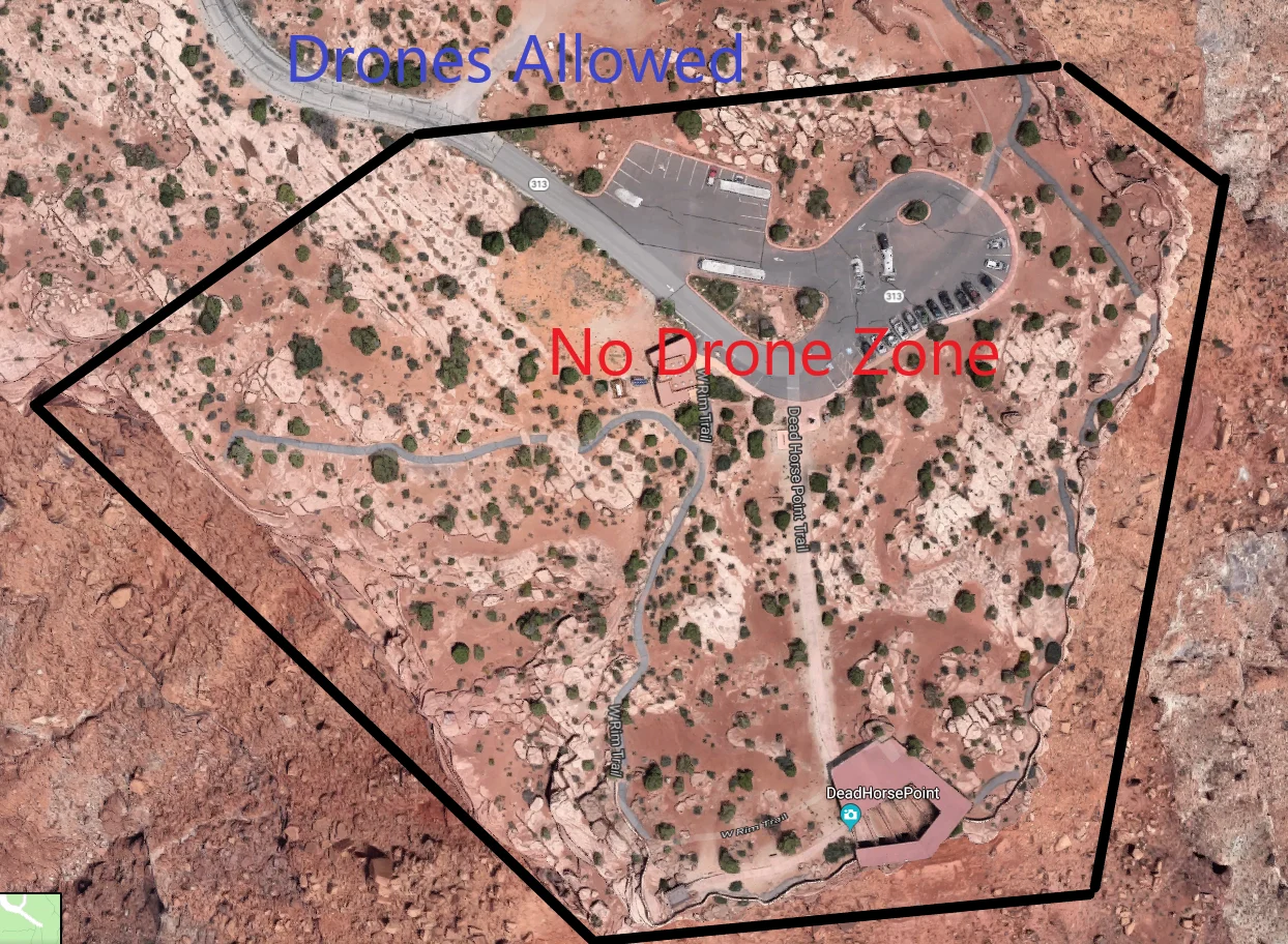 Even if you do have a permit, you must fly within designated zones. These areas are listed on the Dead Horse Point State Park website (link).